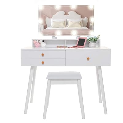 Amolife white corner makeup vanity tables furthermore, the makeup vanity table comes with a center drawer where you can easily keep makeup items and brushes. Limited time sale easy return. Customized vanity table set bedroom wood dressing table with storage drawers makeup table with lighted mirror. Moreover, it lets you have. Makeup vanity table set mirror with led lights dressing table and stool set with drawers removable top organizer multi functional writing desk padded stool large bedroom vanities tables with benches.